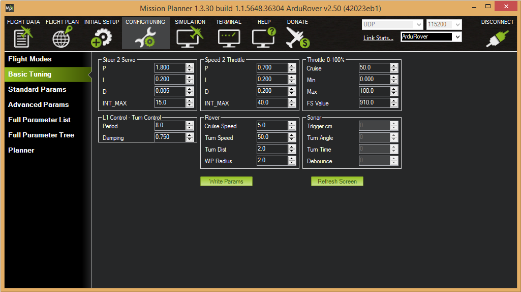 Mission Planner地面站:UGV无人车基本调整¶