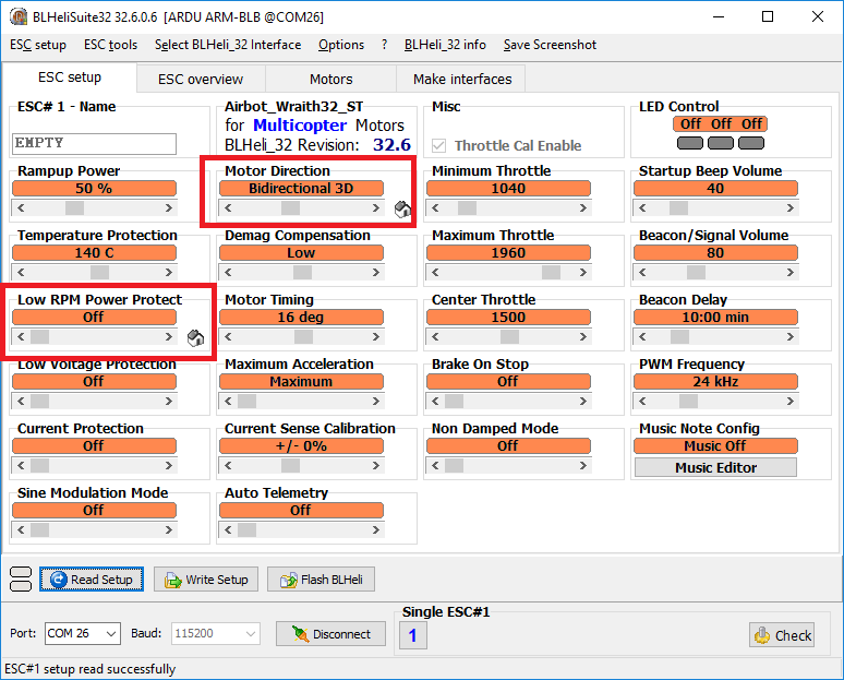 如果使用 BLHeli 电调 使用配置应用程序进行设置: